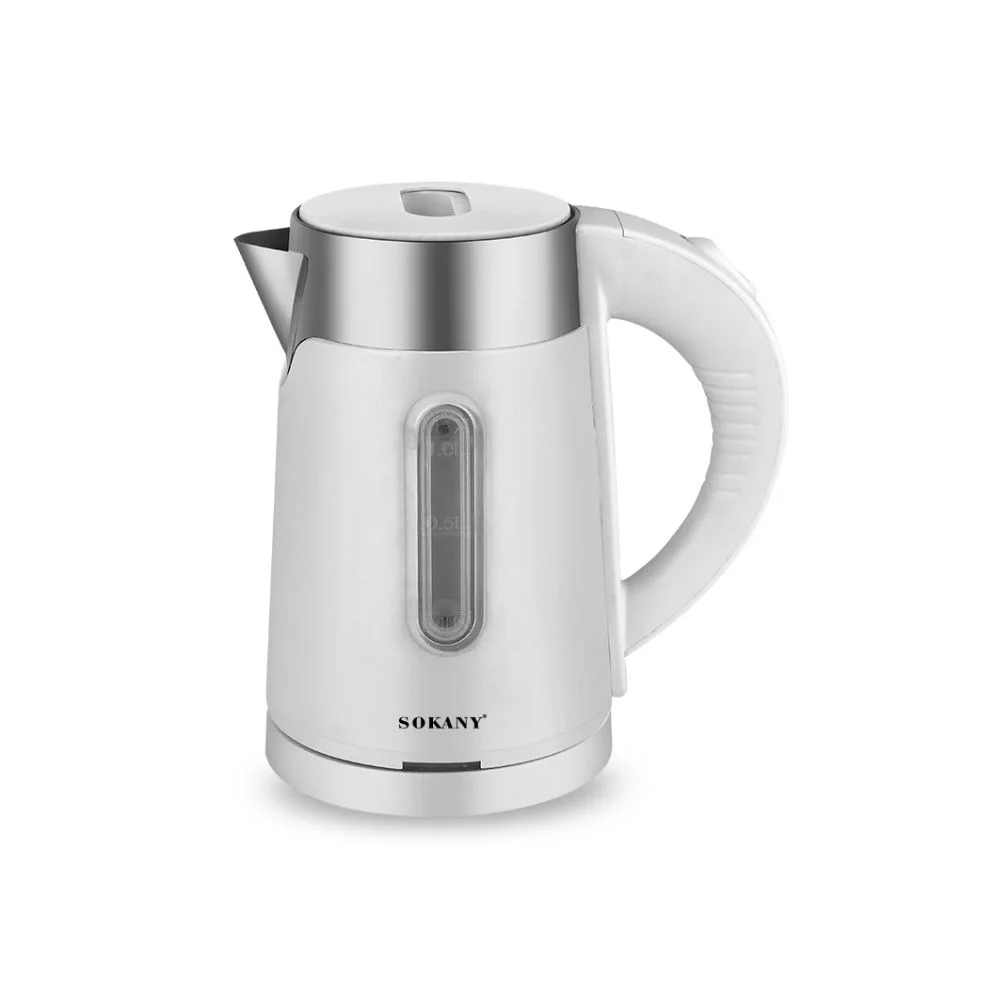 غلاية كهربائية سوكاني SK-0808 بسعة 1 لتر وقدرة 1200 وات، تصميم أنيق وأداء سريع مع ميزة الإغلاق التلقائي والحماية من الجفاف. مثالية للمنازل والمكاتب.